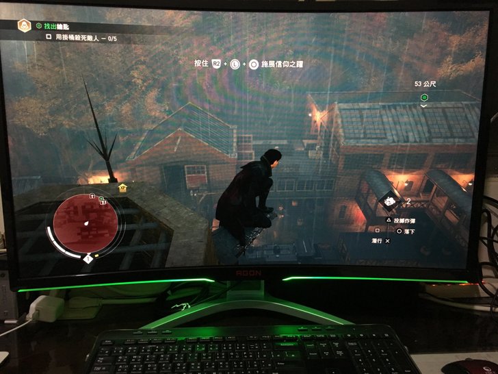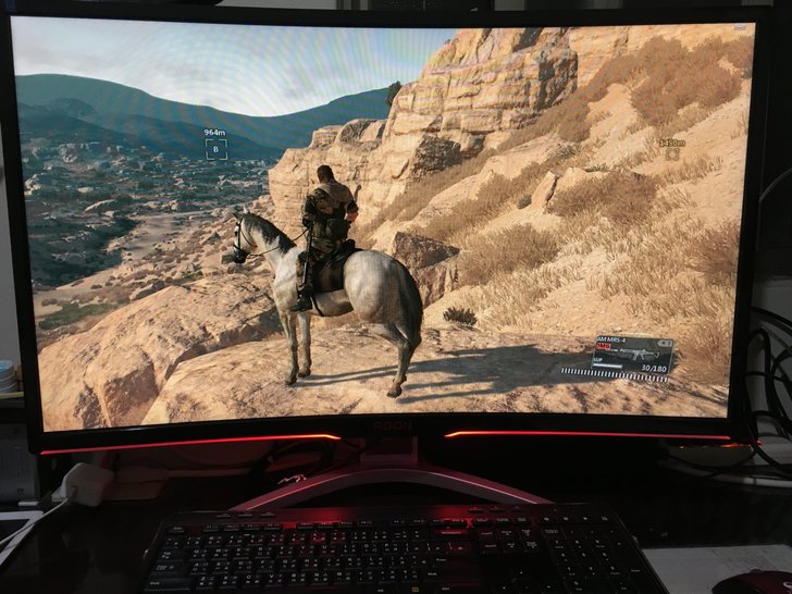 換到電腦上玩把效能全開,首先挑戰的就是潛龍諜影,第一人稱射擊遊戲。我記得遊戲一開始很快就從白天到黑夜於是從頭玩,一到晚上就調整螢幕的”陰影控制”真的超方便!很快就可以把暗處調整的非常清楚!以前玩都懶的調…因為還要調回來很麻煩,但是AG322FCX簡化了這些調整,就可以很輕鬆調來調去,適應不同場景!