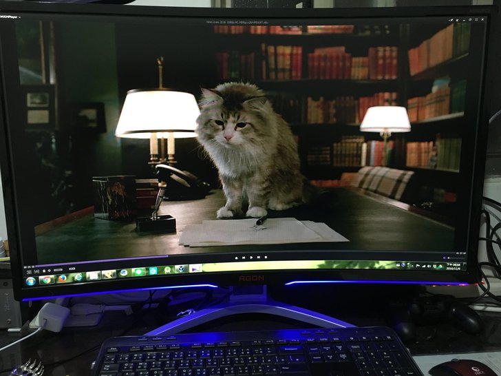 剛開始接觸曲面有點不習慣,一直覺得畫面凹了XD,但我發現椅子調到適當高度,或是螢幕的仰角調整對好頭部之後,才是爽度提昇的開始阿!因為一般平面螢幕眼睛到螢幕中心的距離會比眼睛到螢幕兩側的距離較近,所以其實畫面對眼睛來說是有些微變形的,距離越遠會越小誇張一點表示,就是畫面長像這兩個符號”< >”,但是因為我們平常都看習慣了所以沒有注意到這一點,然而曲面螢幕則沒有這樣的問題!我也是第一次感受到XD