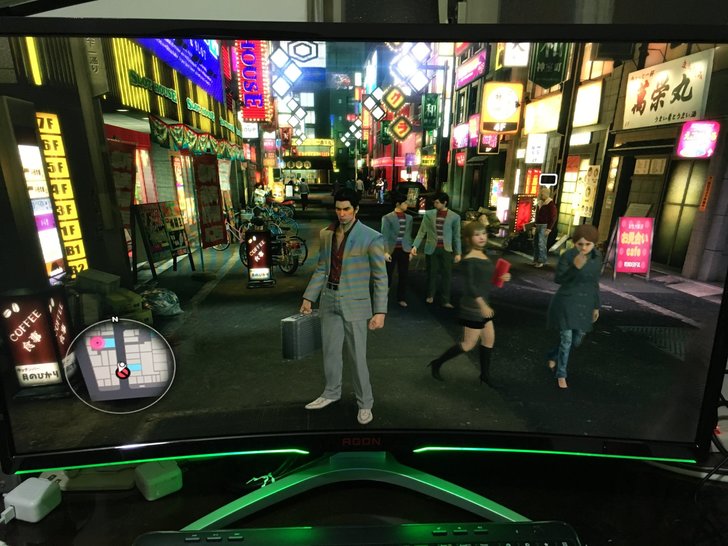 看完了電影效果,當然還是要拿來玩遊戲看看,所以我開了PS4來玩,首先玩了人中之龍極,其實這款遊戲對於畫面的需求不高,但是純粹想玩就開了XD ,32吋曲面讓視覺被填好填滿,所以更容易融入劇情裡!