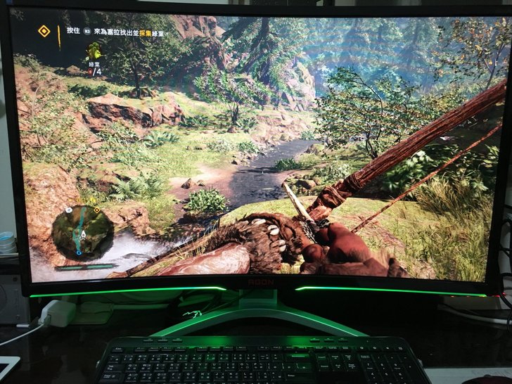 接著搬出極地戰嚎野蠻紀源來玩,是一個很寫實的遊戲,所以場景都相當複雜,由於AG322FCX顯色域較一般螢幕廣許多,所以畫面很漂亮!當風景看也爽XD