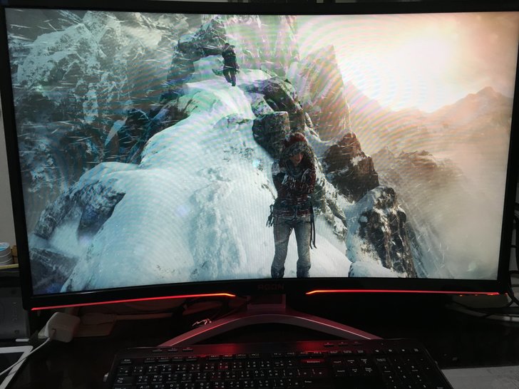 古墓奇兵是一款非常注重動作操控跟反應的遊戲,只要一個沒跟上就只好重來,尤其是這款遊戲可以直接設定144Hz,玩起來真的非常流暢阿!順帶一提,雖然手機拍看不太出效果,但以這個畫面來說,AG322FCX在顯色方面的確滿出色的,在光亮的地方不會變成色階的光暈,在雪地的細節也是粒粒分明,畫面很明顯跟一般5K左右顯示器好很多!