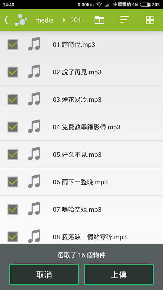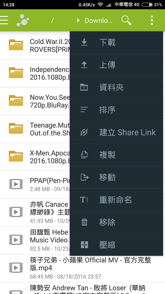 ▲這時只要選定資料夾,就可進行檔案管理的動作了,包括上傳、下載、複製、刪除、排序、移動、命名等功能一應具全,甚至還可壓縮喔。