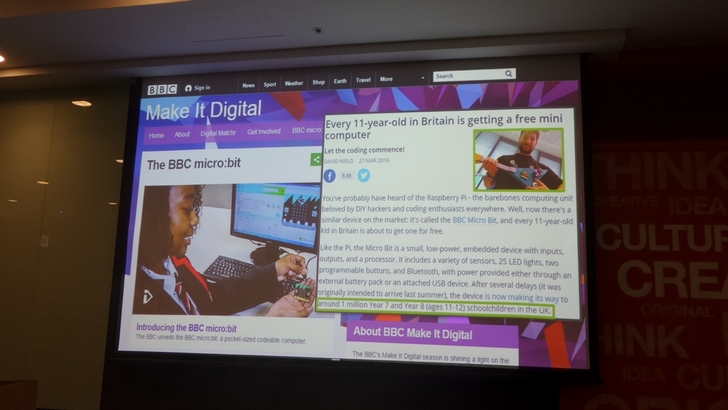 【▼】英國BBC也報導,宣布啟動一項計畫「Make it Digital」1,Make it Digital旨在推動數位化進程,將贈送微型計算機給全國年齡為11歲的孩子們,一百萬台類似於Raspberry Pi的簡裝電腦Micro Bits將在秋季贈送給這些中學生。台灣要執行類似 BBC Make it Digital 計畫應不難做到,為避免城鄉相距太大,整體課程與教育資源規劃乃是重點,更重要的還要產業與政府的大力贊助才行。