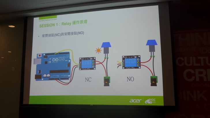 【▼】相信大家都準備好了,不過總要熟悉零件原理,Maker達人-Ino還是說明了繼電器的原理,主要是用較小的電流去驅動較大電流的自動開關,常用作自動調節、安全保護、轉換電路上。