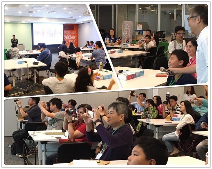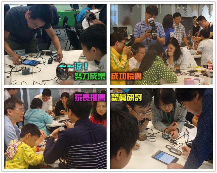【▼】雲教授的實作課,有的是靠爸爸完成,小孩涼爽~有的家長紀錄小朋友成功瞬間的愉悅;有的全組組員聚精會神地在討論,整體來說每一組都非常的認真!真的誠心推薦給家中有小朋友的家長購買。