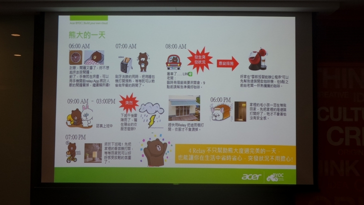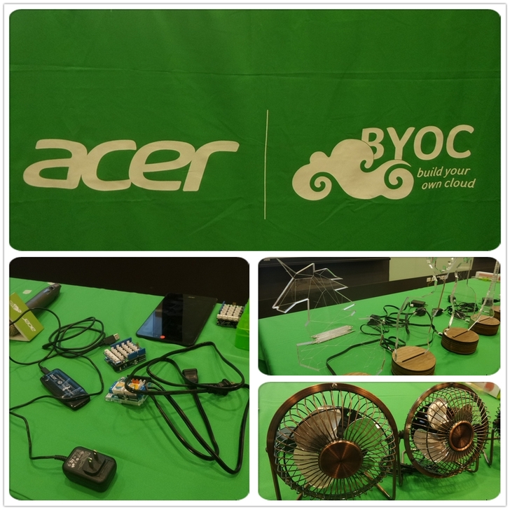 【▼】Acer的BYOC,就是宏碁的自建雲,所謂 BYOC 即是 Build your own Cloud 的簡寫,Acer 創辦人施振榮表示它與私有雲(Private cloud)很相似,同樣是打造一個自建的、非公開的雲端服務環境,但 BYOC 則更為貼近一般消費者市場。使用者只需在手機、平板和桌面電腦上安裝 Ab 的應用程式,就能為不同裝置自動同步包括文件、音樂、影片、相片、應用程式等內容,而容量限制則視乎用戶本身的電腦而定。活動現場可以看見許多零組件,等會雲教授就會教大家如何DIY囉~