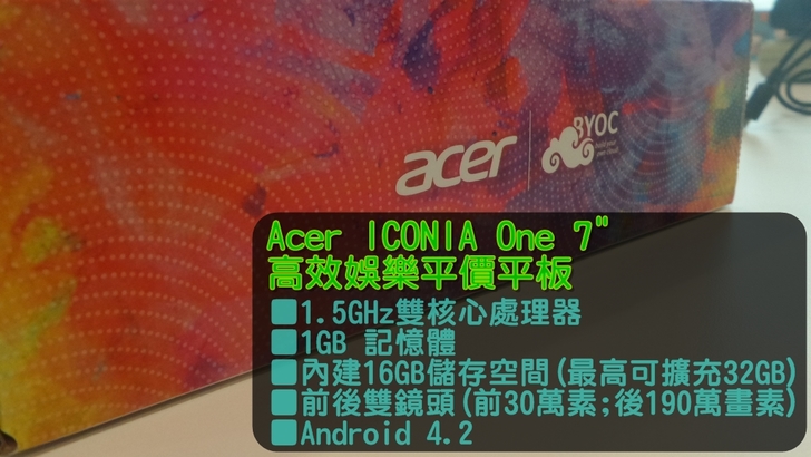 【▼】搭配的平板是Acer Iconia One 7吋平板,不算頂級,不過對於雲教授的控制也足夠了。