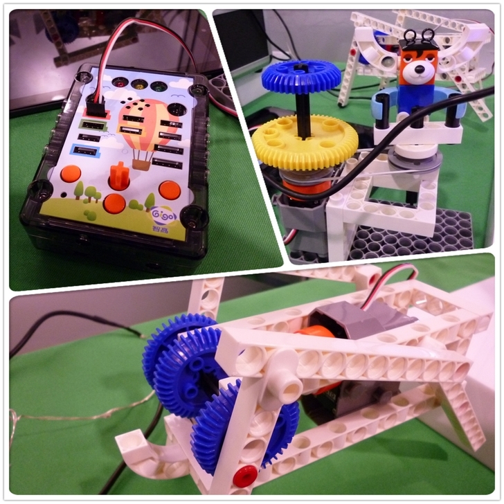 【▼】智高1247A積木拼成的直升機,看似簡單,其實內部加裝了雲教授馬達控制模組與不同的感應器,是最受現場小朋友青睞的作品。