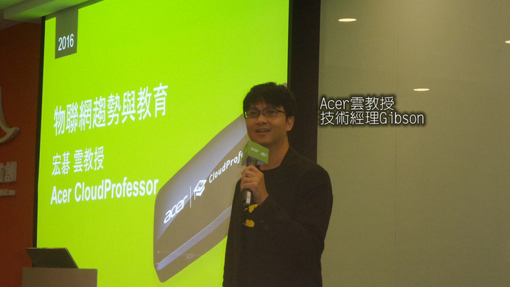 【▼】陳副總作了簡短的引言之後,接著由Acer雲教授部門的技術經理Gibson(以下稱雲教授)來為大家講解物聯趨勢與教育。