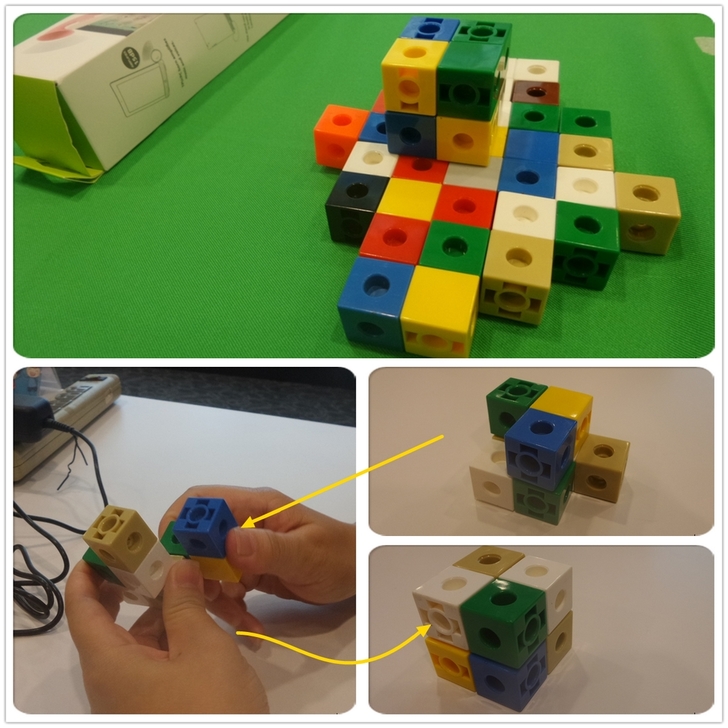 【▼】1凸5凹的智高積木,在徐爸手中任意變化,一下長條狀、一下立方體,最後還呈階梯狀,只能佩服徐爸的功力太強了。