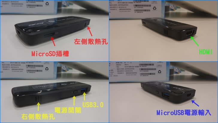 【▼】雲教授四個面向的相關介面,雲教授內建16G空間,想必對現代人來說一定不夠,所以雲教授有提供MicroSD插槽供擴充,電源輸入為MicroUSB的5V@3A,此外USB也提供了3.0的標準,讓傳輸更快速。