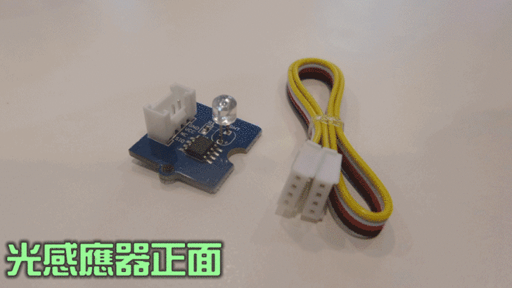 【▼】組裝方式雷同於上一個Relay的控制,只不過光敏模組的接線要接到Arduino Shield板子上。