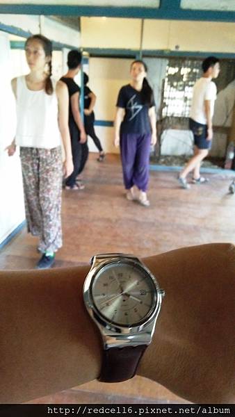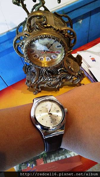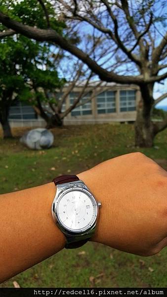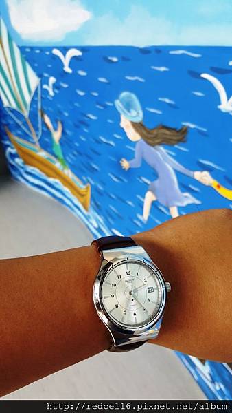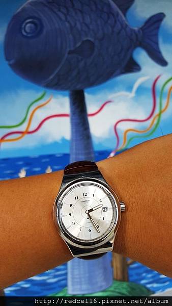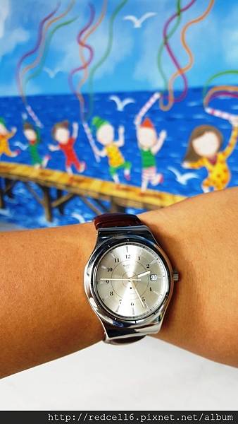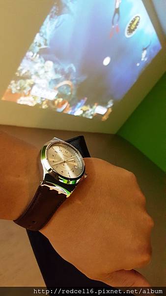 【▼】戴著Swatch SISTEM51 Irony EARTH大地呼喚 (YIS400)機械錶樂遊童趣世界。