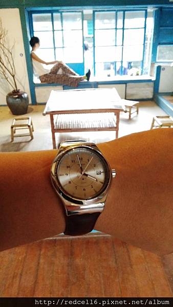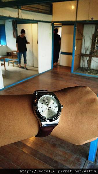 【▼】戴著Swatch SISTEM51 Irony EARTH大地呼喚 (YIS400)機械錶穿梭日式老屋。