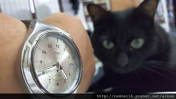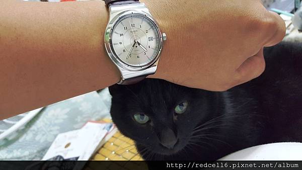【▼】戴著Swatch SISTEM51 Irony EARTH大地呼喚 (YIS400)機械錶也能搭配高科技風格。