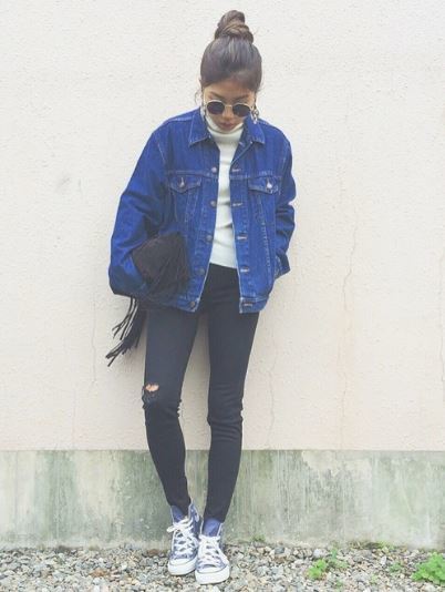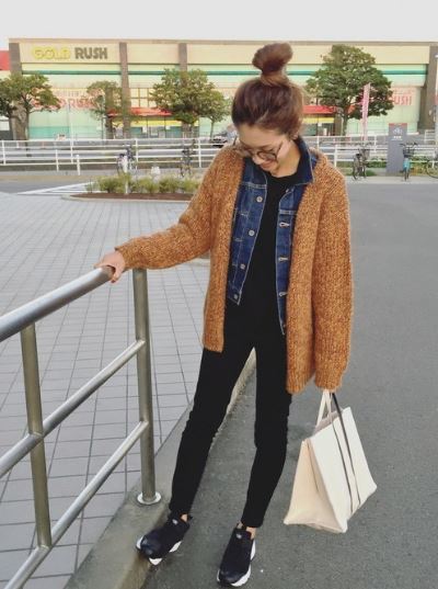 冬天最常配的洋蔥式穿法。在牛仔外套外套上一件針織毛衣,營造出層次感,也讓整體看起來比較豐富!