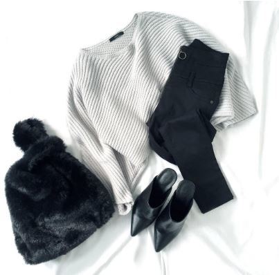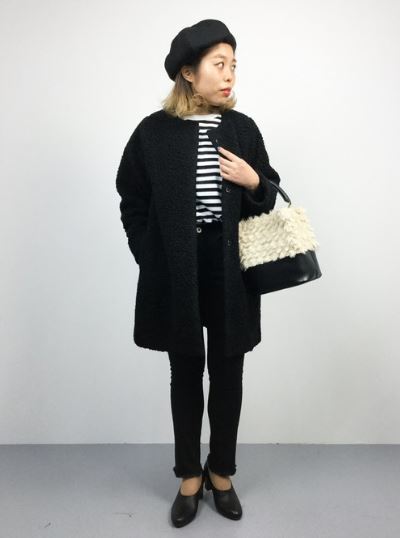 黑白相間的條紋也是高人氣的簡約穿搭風格呢!整體雖看是休閒,但配上毛茸茸的手提包以及大人味的跟鞋,就有了成熟的女性優雅。