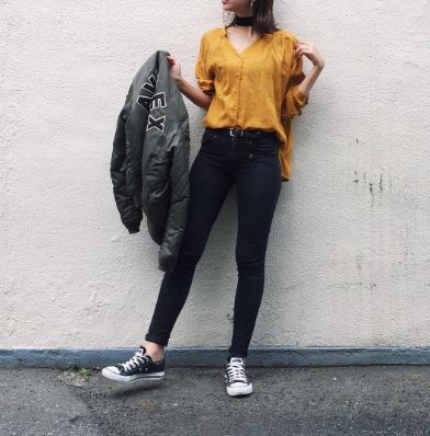今年最夯的MA-1飛行外套!配上軟軟的嫩色系讓女生看起來既有個性又不失甜美。