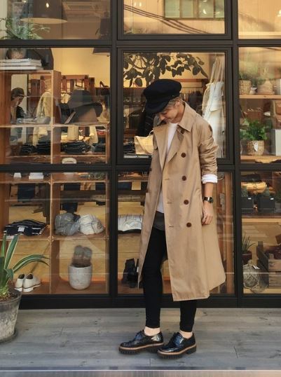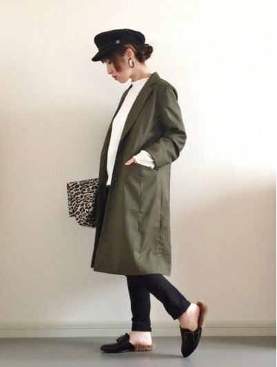 大衣原本就有拉長比例的效果,黑色窄褲加上駝色大衣,再用黑色軍帽點綴,不僅看起來高挑,時尚度也跟著爆表!