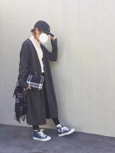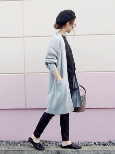 長版的針織外套比大衣多了些休閒、隨性,配上老帽和帆布鞋更有男孩風!