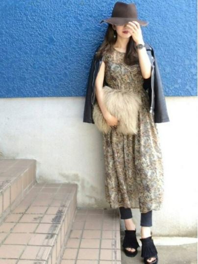 甜美的洋裝裡面藏著個性黑褲!不僅僅是穿搭,更要營造出重疊的感覺,而且在還冷的冬天裡還可以保暖呢!