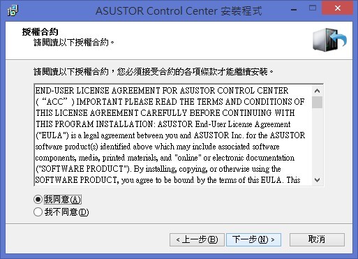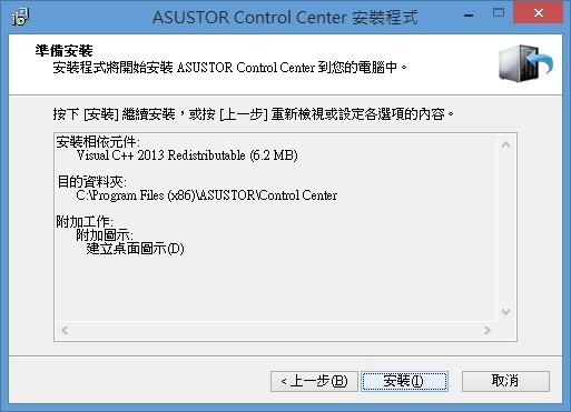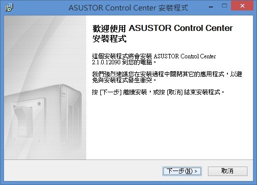 ▼提醒您將要開始安裝ASUSTOR Control Center。