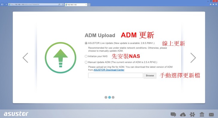 ▼接著來到ADM 更新頁面,提供三種選擇方式,不過我這邊是建議直接讓它線上更新就好惹~~ 方便又快速,而且一設定完就能馬上體驗到更新的功能囉!