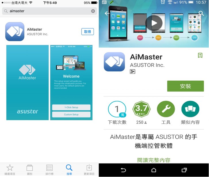 ▼AiMaster 為Asustor 專為行動裝置所推出的APP,用來在Android或Ios的行動裝置上來設定NAS的貼心APP。