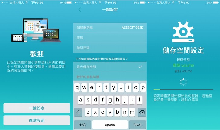 ▼一樣的也是有快速方便的一鍵設定與選擇多樣的進階設定,填寫設定完登入密碼與RAID後,系統就會開始設定囉!