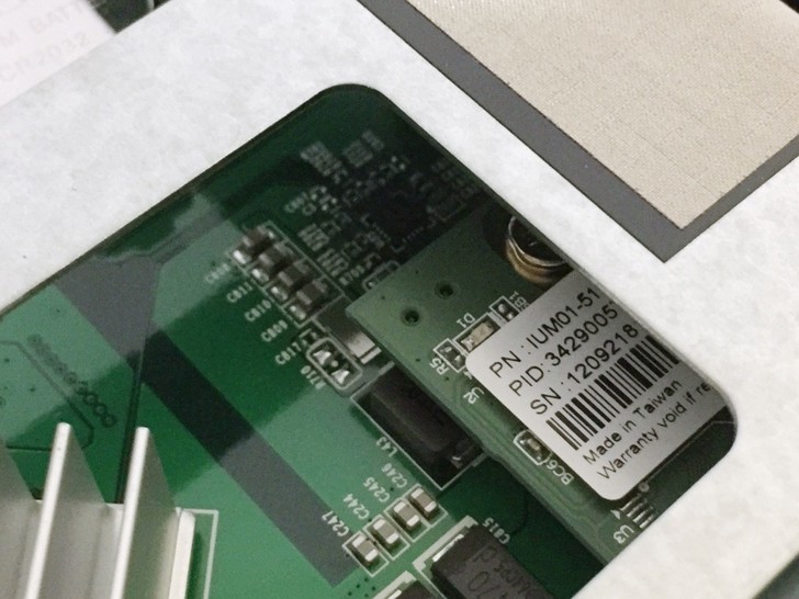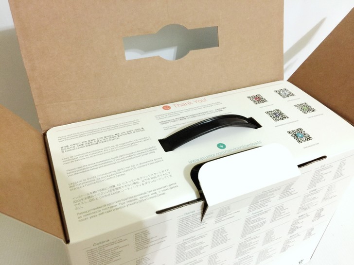 ▼盒蓋部分有手把設計讓使用者在運送更為方便,此外,盒蓋上也印製了NAS的序號、MAC位置,還有內容物清單,拆箱時可以核對一下。