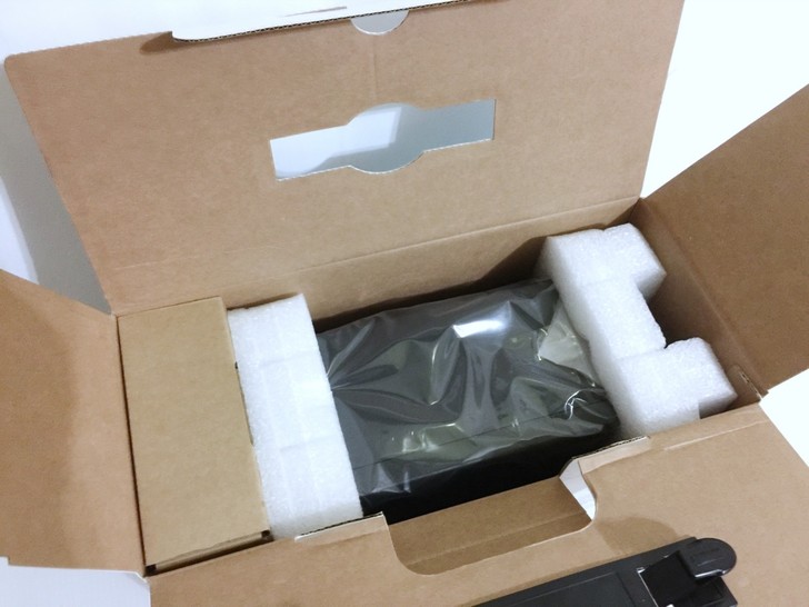 ▼之後就可以看到被厚實泡棉包覆住的NAS主機與配件囉! 主機外層也有相當膠膜包裝來保護哦! 配件還特別用了個紙盒裝箱,看起來更為簡潔,不會一打開就是凌亂的配件。