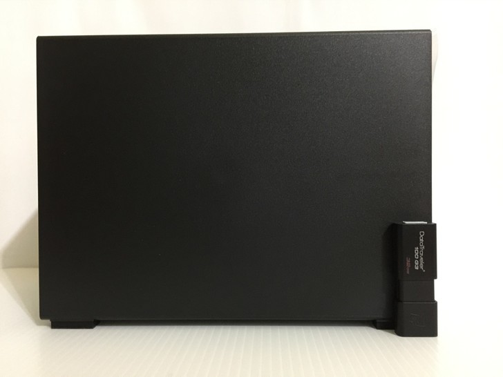 ▼左右側面則是非常的簡潔樸素沒有再多做其他的散熱孔或Logo等,AS3202T整體並不大,從圖中對比的隨身碟就可以知道,體積大小約為165(H)x102(W)x218(D) mm 擺放在家中也不會佔空間,非常的精巧。