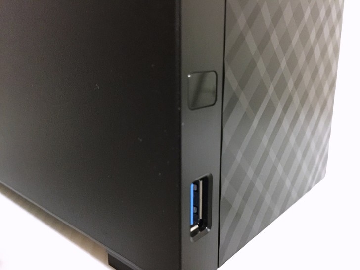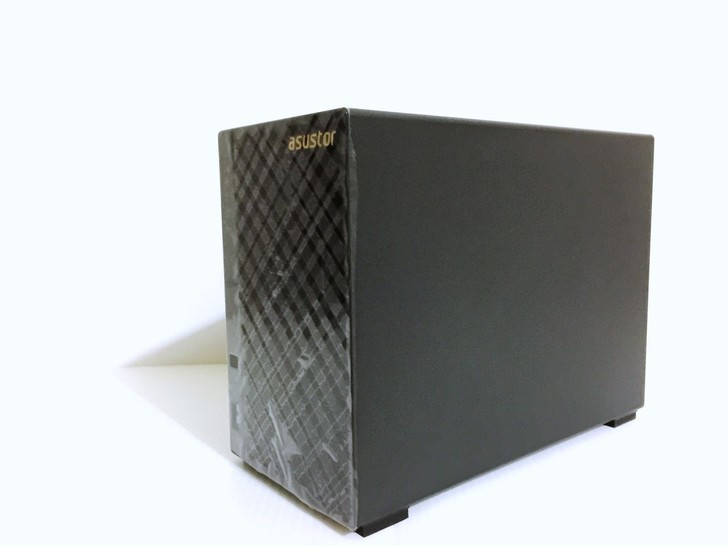 ▼移除掉保護膜後,整個菱格紋路更明顯,右上角的Asustor Logo更為搶眼,使用菱格紋路的設計在許多家用型網通產也都蠻常見,有著美觀大方又不突兀的效果,所以也不用擔心放在家中有礙美觀的問題。
