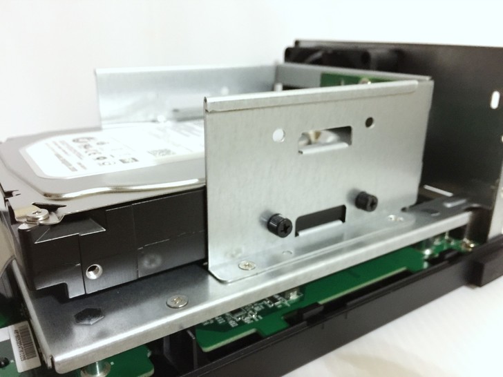 ▼搭配配件內附的螺絲即可固定住硬碟囉! 這次都是使用手轉螺絲做栓鎖,所以在安裝時不用出螺絲起子,就能完成安裝惹~ 比較可惜的是硬碟架上並沒有提供給2.5吋裝置的鎖點與設計,所以有打算使用SSD或2.5吋HDD的使用者,到時候可能還要再自行DIY一下了