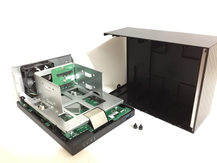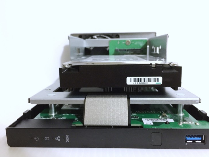 ▼AS3202T 為雙槽式設計,單碟最高可以支援至8TB,兩槽一起RAID0最高有16TB的容量,AS3202T 安裝或更換硬碟都需要拆卸外殼才行,硬碟架的品質蠻不錯,很穩固而且精準度也剛剛好!
