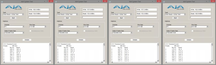 ▼AJA System 測試 1GB、2GB、4GB、8GB測試。