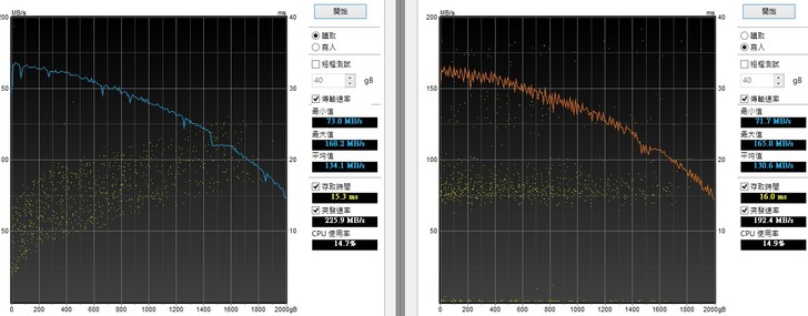 ▼HD Tune Pro 表準測試,左邊為讀取右邊為寫入。