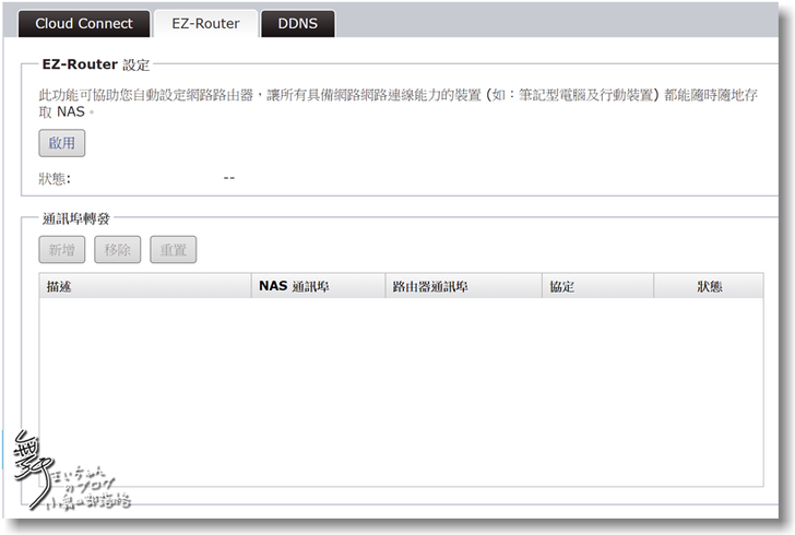 ▲如果家中的AP開啟了UPnP/PMP服務,且NAS和AP在同一網域的話,就能啟用『EZ-Router』的服務。