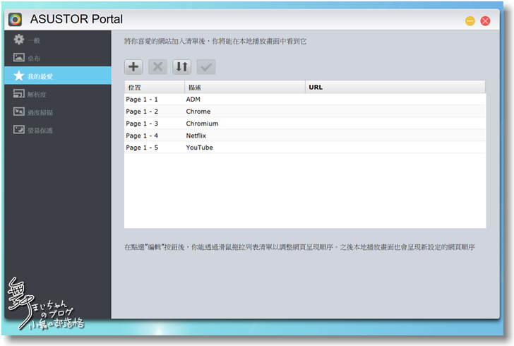 ▲接著是將自己喜愛的網站加入 ASUSTOR Portal 中,點選+號後為欲輸入的網站命名並貼上網站連接。