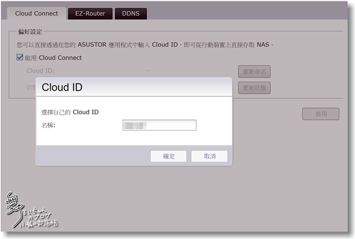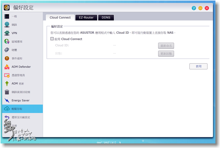 ▲因NAS放在家中,但在公司想連線到家裡的ASUSTOR AS3202T,所以也先需設定Cloud Connect。