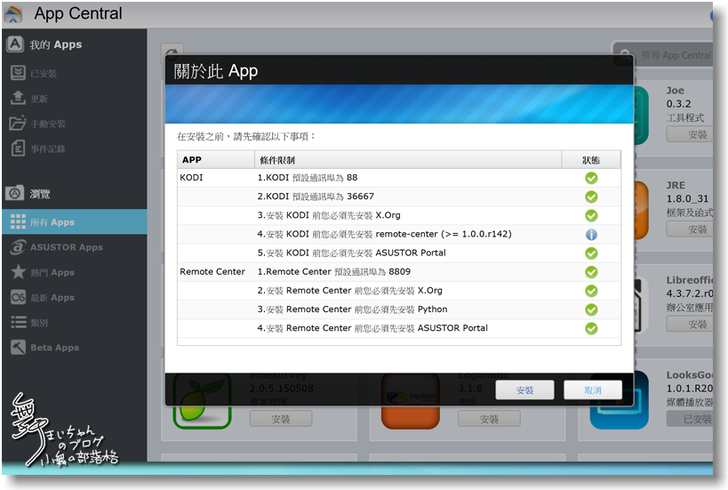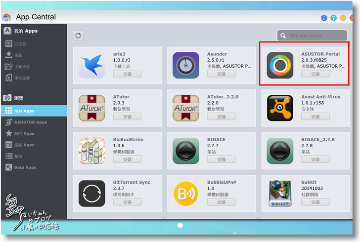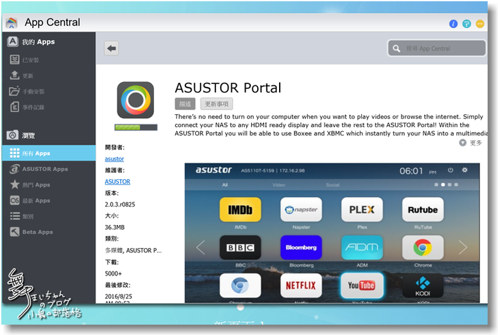 這部份我覺得ASUSTOR在APP的支援與安裝上都是非常簡單