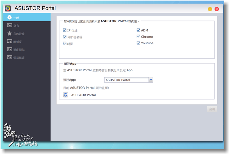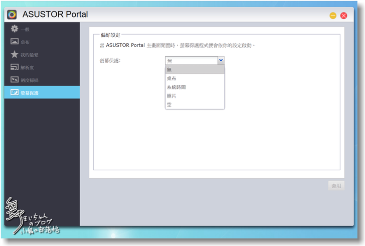 ▲最後的設定是《ASUSTOR Portal》螢幕保護程式。