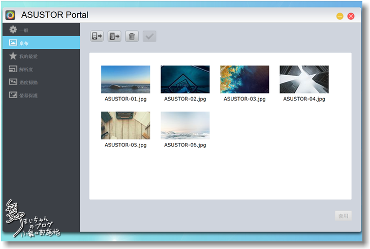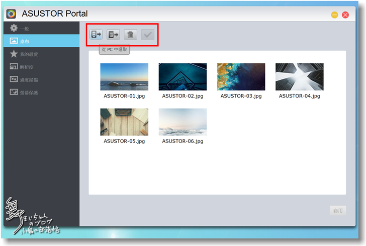 ▲除了內定的圖片,也能從電腦中選取圖檔。套用完畢後你將可以在 HDMI 輸出裝置上看到 ASUSTOR Portal 的新桌布畫面。