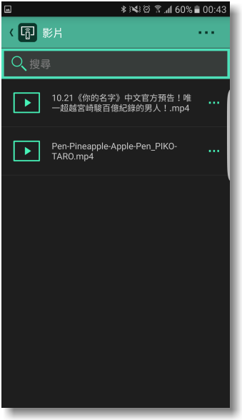 ▲NAS裡的影片就能夠在《AiCast》出現,馬上點擊PLAY來播放,這時手機就能化身成遙控器進行遙控。