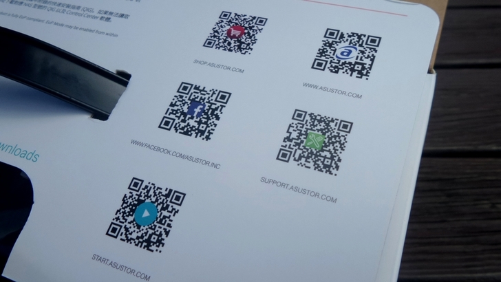 【▼】AS3202T包裝內隔層有Asustor的官網資訊,包含售後服務與粉絲團等資訊,掃描QR Code就能讓你輕鬆連結。aimusic