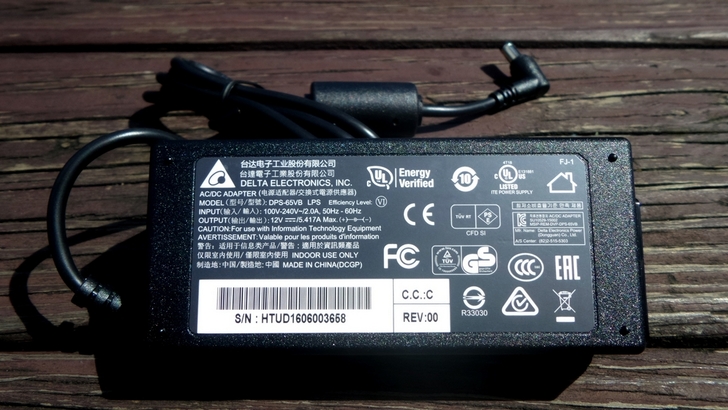 【▼】變壓器的部分,為台達電子所設計的DPS-65VB,通過認證的安規標準相當多,有UL、CCC、EAC、VI等;輸入100-240VAC@2A / 50-60Hz,輸出為12VDC@5.417A,總功率為65W。