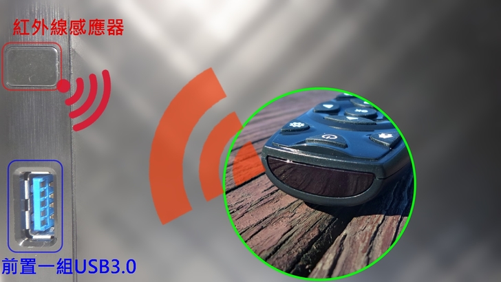 【▼】在指示燈下方還有紅外線接收器以及一組前置USB3.0連接埠。