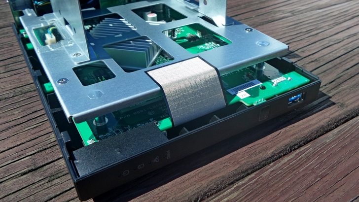 【▼】散熱鰭片下的就是TDP僅6W的Intel Celeron J3160處理器,是採用14nm製程,並具備4C4T、2MB的L2快取記憶體。在這款處理器之中也整合了Intel HD Graphics 繪圖晶片與DirectX 12,提升影像轉檔的作業速度。