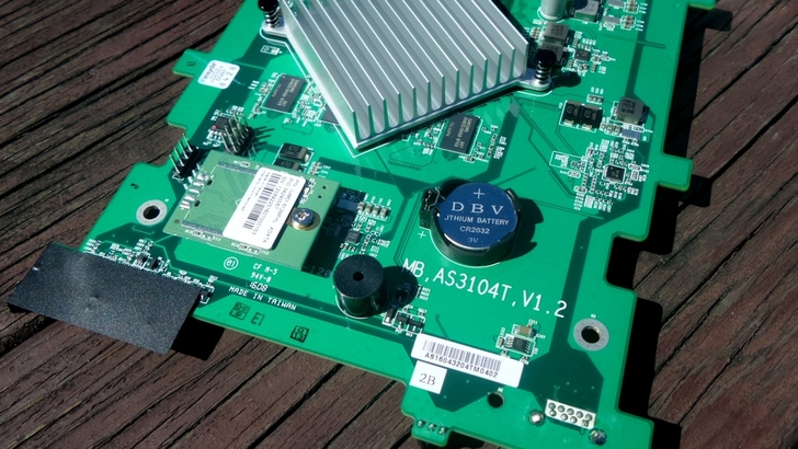 【▼】這塊主板也是同AS3104T所用,板子上有加上被動散熱鰭片的處理器、蜂鳴器與DBV鋰電池CR2032,是常用來維持CMOS電力所用。