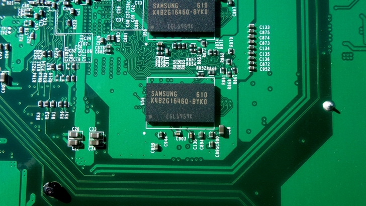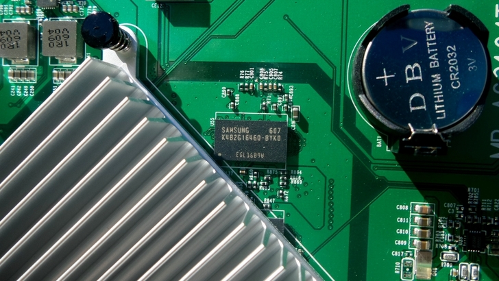 【▼】三星K4B2G1646Q-BYK0記憶體顆粒前後主板共有八顆,代表不能擴充的2GB DDR3L記憶體。